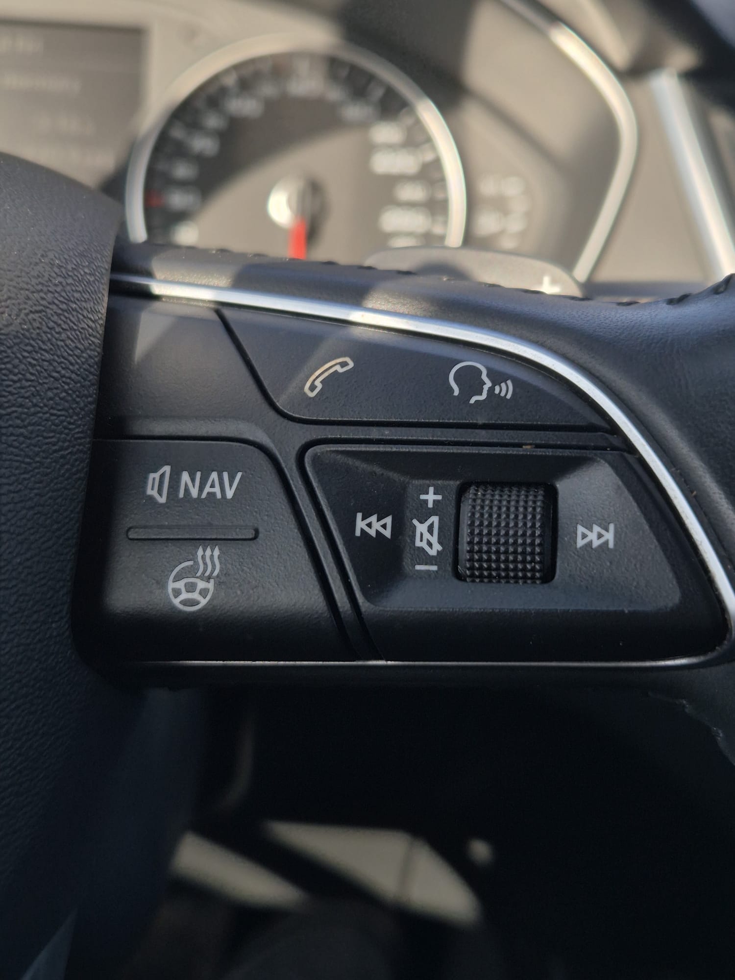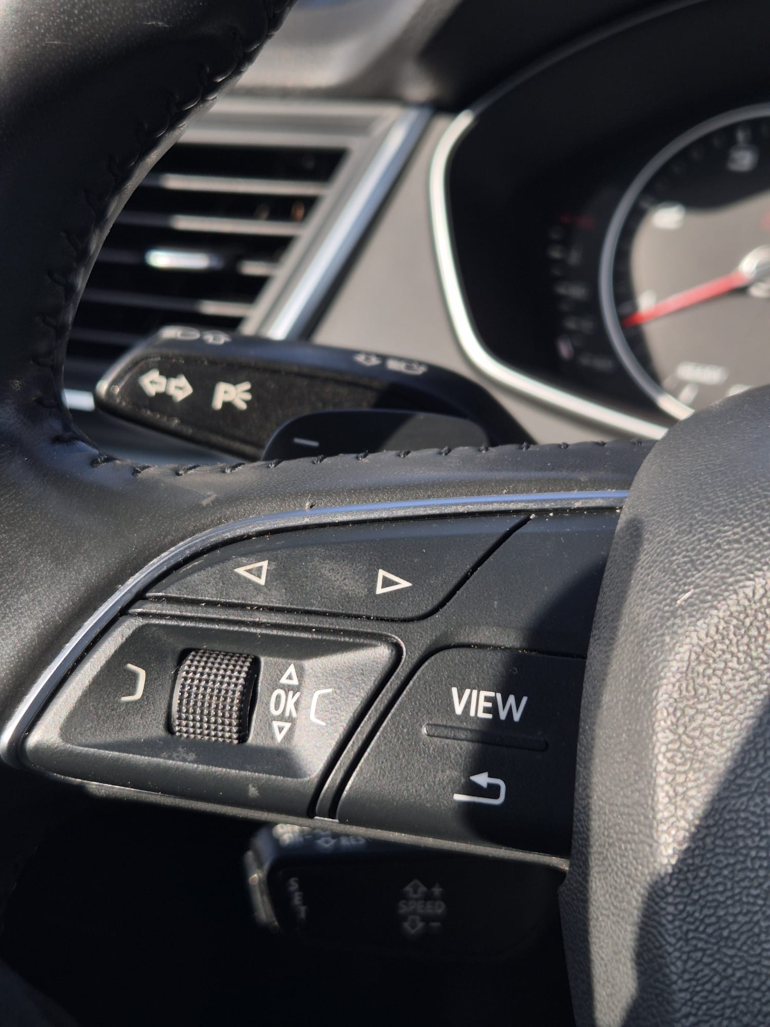 Leather Multifunction Steering Wheel – ādas stūre ar pogām audio un sistēmu vadībai.