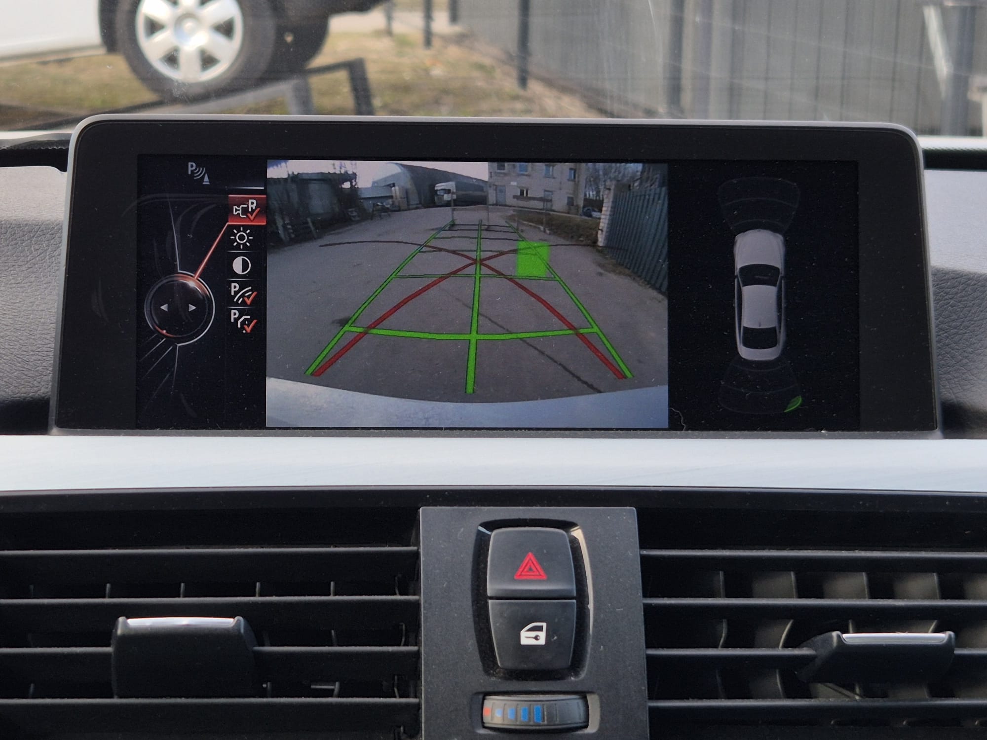 Parkošanās sensori priekšā un aizmugurē ar vizuālu attēlojumu ekrānā.