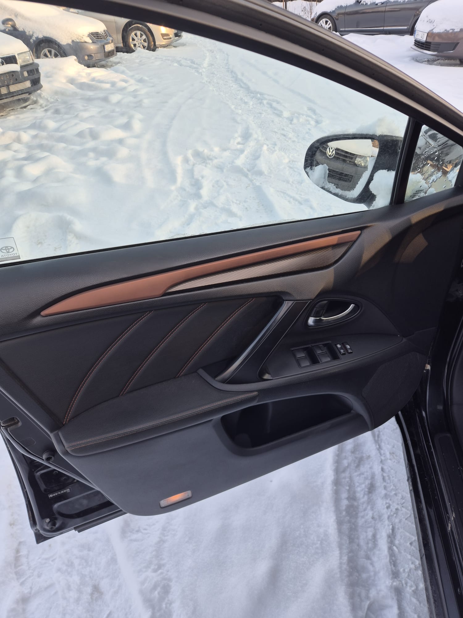 Tumšs aizmugures stikls — privātums un saules aizsardzība.